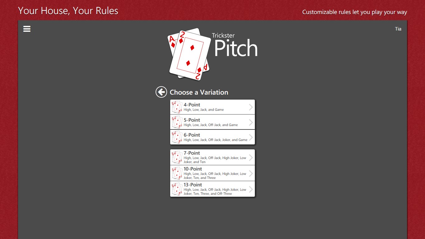 Pitch card game or Setback card game can take many. All 1 2 Free. Trickster Pitch offers customizable rules so you.